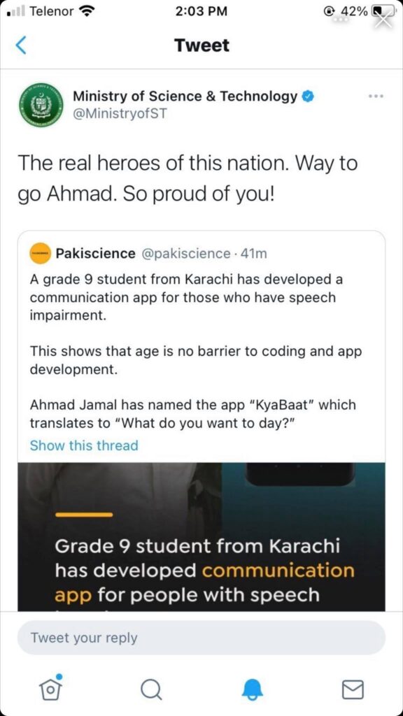 Kya Baat received a lot more fame soon after its release than I expected it to. Pakscience sent out a tweet about the app which led to a mention from the Ministry of Science and Technology, followed soon by over 5,000 downloads!